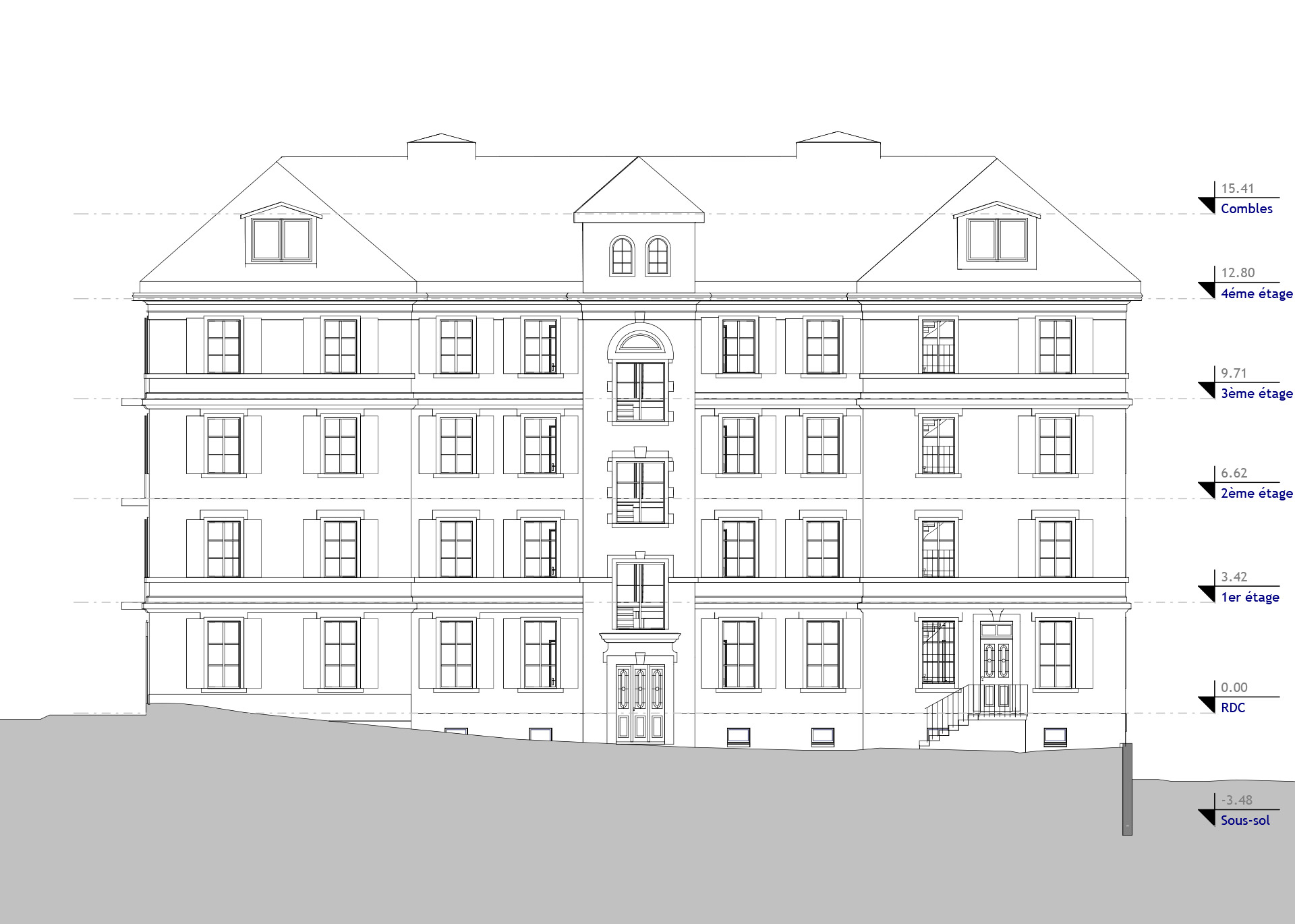 - Précision maximale, jusque dans les moindres détails. Grâce à la technologie de scan laser et à la capture d’un nuage de points, chaque élément du bâtiment – façade, intérieur, combles – est reproduit avec exactitude.